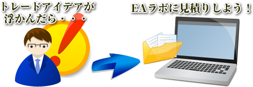 EAラボでは、お客様のトレードルール(売買手法)をEA開発するために、まずは無料お見積りフォームから内容をお伝えいただき、開発内容について双方が確認・理解したうえで実際にEAを開発します。