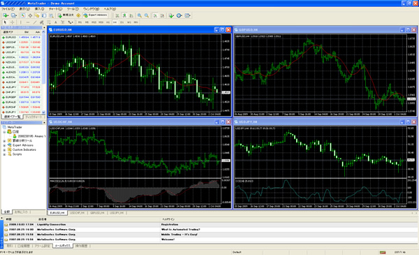 最大のメリットはプログラミングができれば自分でオリジナルのテクニカル指標や自動売買プログラム(EA=Expert Advisor)を作成できることです。